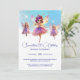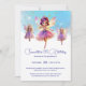 Three beautiful and magical pale pink and purple fairy with shimmering white and purple tinged wings are wearing pretty flowing summer dresses and have their wings open wide. They are set against a white and pale blue background filled with gold stars and magical sparkles. Purple custom templates on both the front and the back for your personalized wording. To clear a row, simply delete the wording to leave the template blank. This cute and enchanted invitation is ideal for kids celebrating a fairy tale fantasy birthday or for any girly fae event.