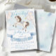 Convite para Chás de fraldas com tema equino com ilustração de um adorável pônei bebê e estrelas de ouro de conto de fadas Watercolor com balões de cores pastel e fita azul para celebração!