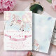 Convite de aniversário com tema Horse, com ilustração de um lindo cavalo bebê e estrelas de ouro de conto de fadas Watercolor com balões de cores pastel e fita pálida para celebração!