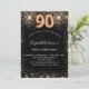 Um convite moderno, na moda e glamouroso para uma festa de aniversário 90. Um fundo preto decorado com brilho sujo de ouro, faíscas. O nome é escrito com um moderno estilo escrito à mão. Personalize e adicione os detalhes da sua festa. O número 90 é escrito com uma fonte de estilo de balão, script.