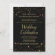 Este belo convite de casamento apresenta uma design de ouro e estrelas cintilantes cor-de-rosa sobre um fundo preto. Esta design é elegante com apenas um toque de chorona e brilho. Bem-vindos seus convidados para compartilhar seu dia especial de celebração de casamento com estes maravilhosos convites com texto dourado. Um casamento é uma celebração única de amor, amigos e família. Torne seus núpcias realmente memoráveis com estes convites bonito e na moda.