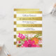 Este convite de casamento único e elegante apresenta um buquê festivo de flores folclóricas e listras brancas modernas sobre um fundo de brilho de folha de ouro. Clique no botão PERSONALIZAR para adicionar texto. Vem em 2 cores. Respostas, guardanapos de coquetel e mais disponíveis. Para adicionar mais glamour, escolha o papel Luxe Pearl Shimmer. Para perguntas ou pedidos de outros itens com este design, por favor entre em contato: cheryl@cheryldanielsart.com. "Flores Folclóricas com Listras de Folha de Ouro" por Cheryl Daniels © 2015.