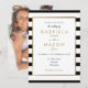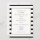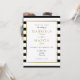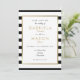 Este convite de casamento elegante apresenta uma borda elegante em folha dourada falsa emoldurando os detalhes do seu casamento definidos em uma tipografia preta e dourada sofisticada em um fundo listrado clássico preto e branco e sua foto especial no verso. Concebido por Thisisnotme