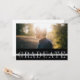 O convite de festas de fotos da graduação moderna apresenta sua paisagem favorita orientada ou foto horizontal na frente, com o "formando" exibido abaixo de uma elegante cinza, com a inscrição azul sobre um fundo preto. Personalize com seu nome, ano de escola e graduação em uma camada de banda pura. Cartões inversos para revelar seus detalhes de festa de formatura. Uma escolha impressionante e moderna para os formandos de 2023.