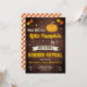 Incomode seus hóspedes com este gênero fofo que revela um convite com uma adorável abóbora com elementos vibrantes contra um fundo de madeira de celeiro rústico. Basta adicionar os detalhes do seu evento neste modelo fácil de usar para torná-lo um convite de tipo único. Sacudir a placa para revelar um padrão elegante de gingham laranja na parte traseira da placa.