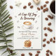 Celebrate the mom-to-be with this charming and cozy "A Cup of Joy Is Brewing" baby shower invitation! Perfect for the coffee-loving parent, this design features beautiful watercolor imagery of a latte with a heart of foam and a tempting stack of chocolate chip cookies. Scattered coffee beans frame the text, setting a warm and relaxed tone for your event