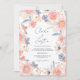 Um bonito convite para o casamento, moderno, chic e elegante com nomes personalizados com caligrafia escrita à mão, com azul aprisionado, pêssego claro, toque floral cor-de-rosa e laranja e 1 foto, adicione seu código QR para rsvp, detalhes do casamento e muito mais. Todas as cores de texto, nomes e fundo são personalizáveis. Um convite simples e minimalista que inclui flores bonito do jardim do outono.