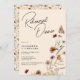 Fall Boho Wildflower Janto de ensaio Convite com uma linda borboleta e burgundy, terracotta, florais de flores silvestres creme e palavras escritas "Janto de ensaio". Belo prado Janta floral Noite Antes do convite para outono e jantadas de ensaio de casamento no outono.