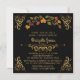 Elegante, outono, chá de casamento de lua noiva em preto e ouro com toques do estilo Art Deco - O elegante e elegante metal de ouro falso, pergaminhos decoram os cantos. O outono deixa design no topo das cores do outono de vermelho, marrom, laranja, ouro amarelo e verde. Abaixo lê-se "Por favor, junte-se a nós para um Luncheon Bridal Honrando" com a noiva para ser o nome abaixo em dourado correspondente, roteiro bonito. Abaixo do nome dela está uma classe, estilo Art Deco, divisor de rolagem metálico dourado. Detalhes do almoço de noivado abaixo do da inscrição em ouro, incluindo RSVP e detalhes do registro da loja. A parte de trás tem fundo preto com rolhas de cor dourada correspondentes nos cantos. Em sofisticados, negros e ouro com sotaque na moda para noivas de diva sassy.