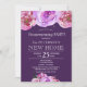 Modelo elegante de convite de festas elegante de lar em roxo escuro com buquês empoeirados de rosa, blush e peonias violetas. Preencha suas informações nos pontos, Você pode optar por personalizá-las alterando ainda mais a cor do plano de fundo, as fontes e as cores das letras. — O convite é adequado para elegantes noites de verão elegantes, festas de outono para o aquecimento doméstico. — Se precisar de assistência, por favor, entre em contato comigo!