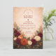 Inspired by rich autumn florals and romantic seasonal palettes, this wedding design features layered roses, dahlias, and soft foliage in warm rust, blush, and cream tones. The painterly floral border frames the layout beautifully, creating a refined yet inviting atmosphere that feels both classic and celebratory.