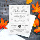 Este elegante convite de casamento outono preto e branco é perfeito para um casamento moderno no outono. A design romântica mostra folhas caídas com elegante tipografia negra em fundo branco