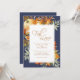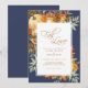 Um convite para casamentos outono rústico elegante com folhagem de cor d'água e design de abóbora. Cor de laranja queimada terrestre complementa a cor azul escura de fundo neste cartão. A frase 'Cair no Amor' aparece em uma fonte bonita e na moda. Este convite está pronto para você personalizar com seus próprios detalhes para convidar seus convidados para seu dia especial.