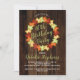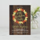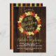 Folhas coloridas de carapaça do outono cortadas em amarelo ouro, laranja rústico, vermelho e verde em convites de aniversário de fundo de madeira de aparência escura falsa. Mostrado aqui para um aniversário de 40 anos, o convite pode ser modificado para qualquer idade. Design original por Holiday Hearts Design (todos os direitos reservados).