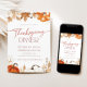 Celebrate the warmth and beauty of the season with this elegant Thanksgiving invitation featuring watercolor pumpkins, golden fall leaves, and rustic autumn accents. Perfect for your Thanksgiving dinner, Friendsgiving gathering, harvest feast, or family celebration, this customizable invite brings a cozy touch of fall charm to your holiday event.