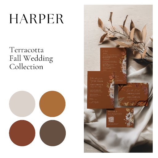 Este belo convite captura a essência da beleza do outono com os seus delicados tons de design floral e terracota. Quer você esteja planejando uma cerimônia russa ao ar livre ou uma reunião íntima no interior, este convite define o tom perfeito para seu evento. Personalize este convite com seus nomes, data do casamento e detalhes do local para torná-lo realmente seu. Seus hóspedes ficarão encantados em receber um convite tão maravilhosamente projetado e pensadamente feito, estabelecendo a palco de uma celebração inesquecível do amor. Projetado para coordenar com a Coleção de Convite Caseiro "Harper". Visualize o link de coleção nesta página para ver todos os itens correspondentes nesta bela design.