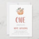 Um convite de aniversário moderno perfeito para o aniversário de queda da sua menina, com uma abóbora de pêssego de cor aquática, decorada com rosas de pêssego e marfim e folhas verdes de sábio. O texto está em uma mistura de fonte riscada com pincel de terracotta e fonte sage sans serif.