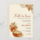 The image shows a fall-themed invitation card with the text "Fall in love" decorated with pumpkins and autumn leaves. The card exudes a warm, cozy feel.
