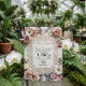 Defina o tom para um affair romântico de jardim com este design inspirado no vintage, apresentando flores realistas em rosa beijo e damasco. O layout apresenta uma sobreposição de falso laço impresso delicado e folhagem verde-sage que emoldura elegantemente sua foto de noivado favorita. Fácil de personalizar com seus detalhes usando os modelos de caligrafia clássica.