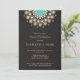 Convites Falso Mandala Circular em Turquesa e Dourado Preto