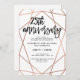 Esses convites de festa de aniversário de casamento de 25 anos elegantes apresentam um padrão geométrico de falso ouro rosa em um fundo branco, com tipografia preta moderna.