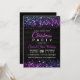 Cartão de convite de Natal bonito e roxo, preto, brilho. Um cartão de Natal bonito e brilhante. Perfeito por enviar para a família ou amigos durante o feriado. Para torná-lo mais especial, ele é embelezado com belos brilhos falsos. Este design também pode ser transferido para qualquer produto do zazzle. Você pode personalizá-lo com seu próprio texto e informações. NOTA: Estes são gráficos impressos - sem brilho real, joias ou peças levantadas
