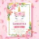 Dourada Fama Floral Rosa-Rosa, Unicórnio Convite de Aniversário
