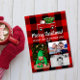 Adicione suas 3 fotos de família ou crianças com nome e ano, para um garoto rústico tema Cartão de saudação de Natal. Antiga caminhonete vermelho com árvore de Natal na cama, com tipografia de roteiro Feliz Natal, adorável vintage no estilo country de feriado com impressão de padrão de país de xadrez de búfalos vermelho e preto como uma camisa de flanela.