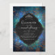 A quinceanera da Vintage economiza a data que apresenta um quadro negro contra um fundo espumante brilhante em acentos de cobre e azul.