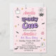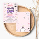 O convite apresenta fantasmas bonitos, morcegos, abóboras e teias de aranha. Esta design é perfeita para uma festa de primeiro aniversario de menina no Halloween.