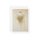 A imagem retrata uma pintura minimalista de uma figura fantasmagórica envolta em um lençol branco com dois olhos escuros e ocos. O fantasma segura um grande e exuberante buquê de flores silvestres que contrasta com a simplicidade da aparência do fantasma. O fundo é um bege suave e cremoso, enfatizando ainda mais a natureza delicada e surreal da cena. A obra de arte mistura o sinistro com o caprichoso, criando uma atmosfera intrigante e tranquila.