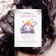 Adicione um pouco de magia ao seu chá de fraldas com este Convite "A Baby is Brewing" de Halloween, apresentando a mistura perfeita de fofo e assustador! Este charmoso design apresenta um sorridente caldeirão rosa e roxo, um fantasma flutuante, curioso gato preto, morcegos e uma vela brilhante, todos ilustrados no estilo de aquarela suave. Acentuado com teias de aranha brincalhona, é uma maneira caprichosa de celebrar um pequeno no caminho durante a temporada de Halloween. Ideal para um chá de outubro com uma doce reviravolta — totalmente personalizável para a sua celebração ortográfica!