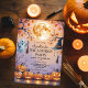 Acenda a celebração do Dia das Bruxas com este convite de festas espetacular com pistas brilhantes, um fantasma amigável, um chapéu de bruxa e uma lua de cheio brilhante. Perfeito para festas infantis, reuniões familiares ou eventos festivos de vizinhança. Personalize facilmente com os seus detalhes e envie um convite mágico e divertido aos seus convidados, que ficarão entusiasmados!