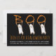 Este convite assustador para a festa do Dia das Bruxas apresenta três adoráveis fantasmas brancos segurando a palavra 'BOO' em um moderno design preto e laranja, com seu texto escrito em laranja e branco. Perfeito para uma festa de Halloween, este convite chic e contemporâneo é um sucesso!