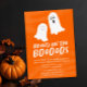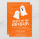 Convide todos para um momento fantasmagórico com este divertido convite de Dia das Bruxas "Traga os Boos"! Apresentando fantasmas flutuantes adoráveis em um fundo laranja vibrante, é perfeito para uma divertida e amigável casa ou festa assombrada.