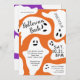 Truques ou guloseimas? Celebrar o Halloween com estas lindas formas brancas de fantasmas com cores de fundo laranja e púrpura editáveis, para uma festa de Besta Spooktacular do Dia das Bruxas! Perfeito para a festa de adultos ou crianças.