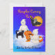 O convite para festas apresenta dois pequenos fantasmas e um gato preto esculpindo abóboras enquanto sentado numa nuvem. Os morcegos vampiros andam a observar em frente a uma lua de cheio. Personalize a área frontal e traseira do cartão de convite com todas as informações de sua parte.