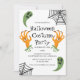 Convide seus amigos para uma noite terrivelmente divertida com este convite de festas único de fantasia de Halloween. A frente do cartão é uma mistura perfeita de mestiços e brincalhões, com mãos monstras assustadoras, fantasmas verdes amigáveis e teias aranhas clássicas. Todos os detalhes importantes para o seu encontro de fantasmas estão claramente definidos. O dorso apresenta um padrão vibrante e atraente de ícones do Dia das Bruxas, incluindo canas doces, ossos, globos oculares e muito mais. Este convite é a forma perfeita de estabelecer o clima para a sua celebração assustadora.