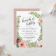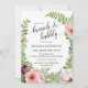 No estilo bonito, este chá de panela "brunch and bubble" apresenta uma coroa floral aberta com rosas cor-de-rosa, burgundy e lavanda pálida com vegetação da floresta à deriva. O verso tem um padrão floral vintage luxuoso coordenado em rosa poeirento.