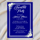 Faça sua celebração de aposentadoria se destacar com nossos Convites de festas de aposentadoria de despedida de mulheres elegantes. Essas cartas lindamente projetadas apresentam um fundo azul tranquilo com uma linha branca tripla clássica e rosas brancas refinadas nos cantos. O roteiro elegante para "Farewell Party" e fonte simples de serif para os detalhes facilita a personalização e a na moda. Perfeito para eventos corporativos, esses convites também oferecem um espaço no verso para qualquer informação adicional. Celebrar um marco com a mistura perfeita de elegância. Peça hoje!