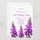 Um convite para uma festa de verão. Luvas espinhosas roxas, cor-de-rosa, num prado de Verão, num fundo branco.Perfeito para um convite de aniversário 50º (ou qualquer idade) - interior ou exterior num jardim, quintal como uma festa de chá! Personalize e adicione um nome e detalhes da parte.