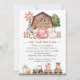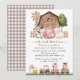 Invite friends and family in style and set the tone for your special day with this charming birthday invitation. Design features farm animals (cow, horse, sheep, pig, rooster, chicken), brown barn and brown tractor on white background.