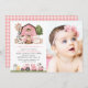 Invite friends and family in style and set the tone for your special day with this charming birthday invitation. Design features farm animals (cow, horse, sheep, pig, rooster, chicken), pink barn and pink tractor on white background.