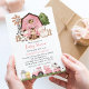 Invite friends and family in style and set the tone for your special day with this charming baby shower invitation. Design features farm animals (cow, horse, sheep, pig, rooster, chicken), pink barn and pink tractor on white background.