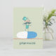 Celebre um marco especial com este convite caprichoso de farmacêutico, apresentando um personagem de desenho animado excêntrico em pé sobre uma cápsula gigante de comprimido azul. Esta ilustração desenhada à mão com bigode vintage e óculos vermelhos é perfeita para festas de formatura na faculdade de farmácia, celebrações de aposentadoria ou cerimônias de jaleco branco. Personalize o texto para convidar amigos e colegas para um evento temático médico que se destaca com humor único e charme profissional.