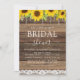 Budget Rustic Farmhouse Sunflower String Lights Lace Wedding Convites de chá de panela sobre fundo de madeira - inclui uma bela e elegante tipografia com moderna Country Fazenda House Sparkle para a celebração especial do Dia do Casamento.