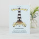 Este convite de festas de aniversário de casamento náutico apresenta um farol branco e preto, bandeiras amarelas claras e corações vermelhos. Personalize o texto para se adequar a qualquer ano de aniversário. O texto adicional pode ser adicionado à parte traseira da placa, se necessário.