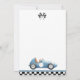 This fun 1st birthday party invitation features a vintage blue race car and chequered flags. Designed by Thisisnotme©