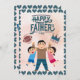 Father's day card with father and two children. Best dad pokal on the back with space for text.