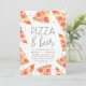 Convide amigos e família para se reunirem com pizza com estes cartões de convite para festas de noivado casuais fofos. Design apresenta os detalhes da sua festa rodeados por fatias coloridas de pizza de pepperoni. Adicione seus detalhes de celebração de noivado usando os campos modelo fornecidos.